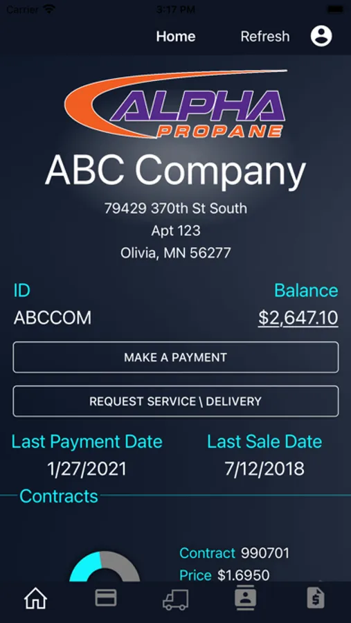 Information at your fingertips! This app gives you direct access to your account balance, location and contract information. It also gives you the ability to store and process payment and request service work and deliveries directly through the app.