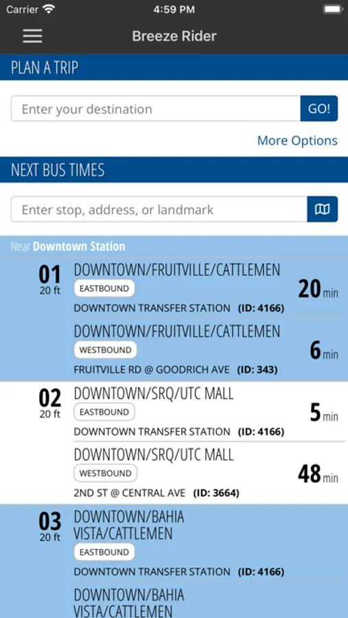 Breeze Rider app is designed to help new and current SCAT riders navigate Sarasota County Area Transit’s bus system. Users can browse route maps and schedules, or select the “Plan a Trip” feature to generate information for a specific starting and ending destination. The app tracks buses on the map in real time and provides estimated arrival times. Users may opt to receive notifications about service changes, route delays and detours, and other time-sensitive announcements. Additional information about SCAT programs and services is also available through the app.