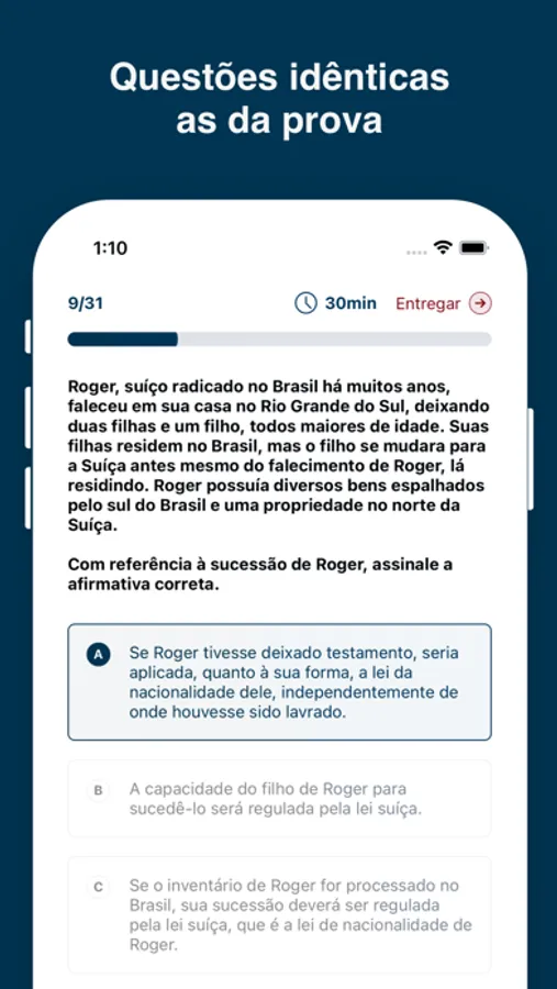 Com o nosso aplicativo, você pode acessar uma ampla variedade de simulados de prova, todos baseados nas questões oficiais do exame da ordem. Isso significa que você pode ter certeza de que está estudando com as perguntas e respostas mais atualizadas e relevantes.