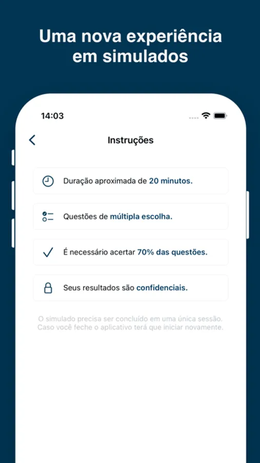 Além disso, nosso aplicativo é extremamente fácil de usar. Com uma interface simples e intuitiva, você pode facilmente navegar pelos simulados e monitorar seu progresso. Você também pode personalizar seus estudos, selecionando o número de perguntas em cada teste e escolhendo as áreas específicas que deseja focar.