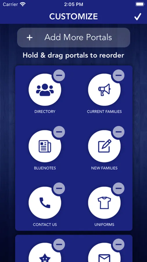 Your SJDLS app is fully customizable by you: Rearrange your portals to easily access whichever features you use most. If you want to check school events frequently, you can put that portal front and center. If you never check the directory, you can turn that portal off.