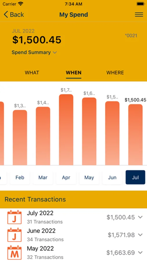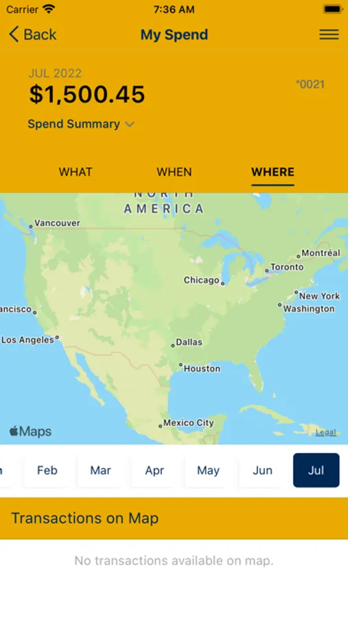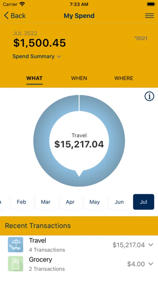 Get rich data about your card purchases, with Spend Insights. Sort spend insights by merchant category, location, and monthly trends.