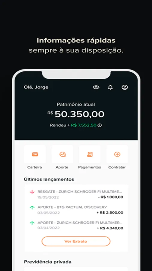 Com o EQI Seguros você pode encontrar soluções para você e sua família, falar com assessores sobre qualquer dúvida, pode ver seu patrimônio, carteira, extrato, de acordo com os produtos que você possui.