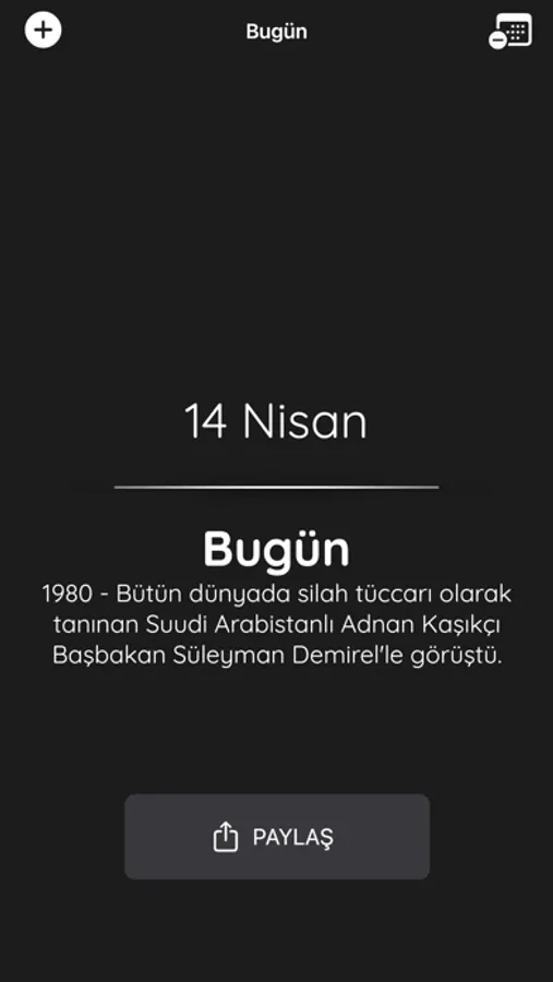 Tarihte bugün neler olduğunu merak ettiğinizde, olabildiğince fazla içeriği sizlerle paylaşmaya çalıştık. İsterseniz çevrenizde olup bitenleri bize bildirip uygulama içinde yayınlanmasını sağlayabilirsiniz. Bu uygulama aynı zamanda tarihi bir arşiv olarak ilerleyen zamanlarda sizlerin bildirimleri ile çok daha zenginleşecektir. İndirin tarihe hakim olun.