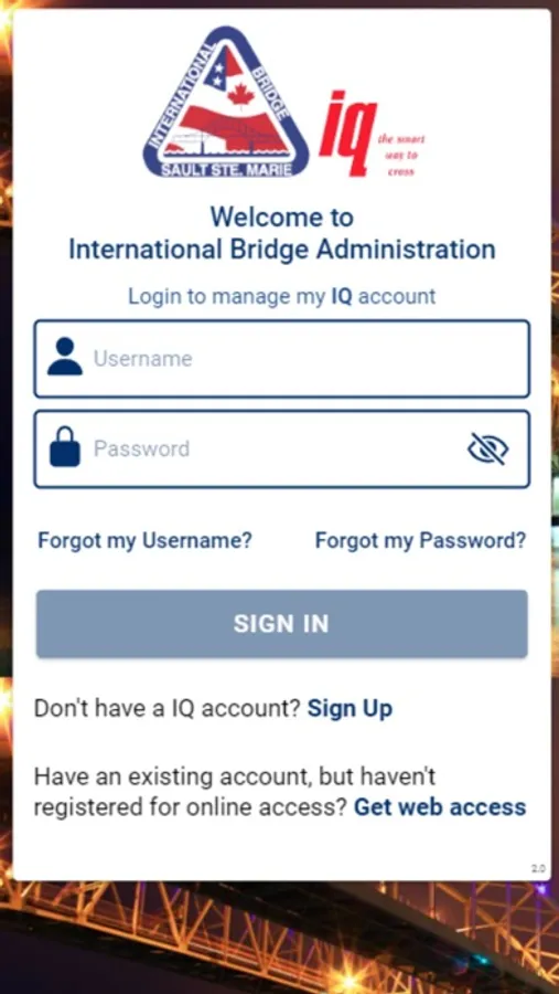 This application allows customers at the International Bridge Sault Ste. Marie to log in and manage their toll account. Customers can view their transactions, transponders, make payments to their account, and edit account information.