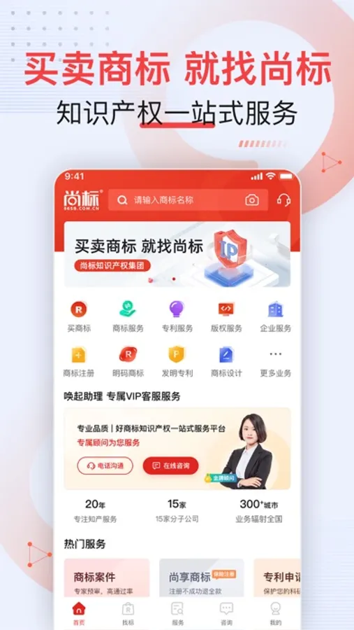 尚标商标综合服务App隶属于吉象人品牌设计(上海)有限公司。总部位于上海,旨在从知识产权服务出发,深耕专业品质。我们以“助力品牌走向市场”为主要企业使命,打造出以商标、专利、版权等数个业务结合的链条式闭环服务体系,以更加专业的能力与态度去铸就品牌高速发展的平台。 企业使命:助力品牌走向市场 经营理念:深耕专业品质,立足原点,服务大众 核心价值观:诚信为主,服务为本,合作为根基 愿景:建设世界一流的知识产权服务平台,助力品牌高速发展