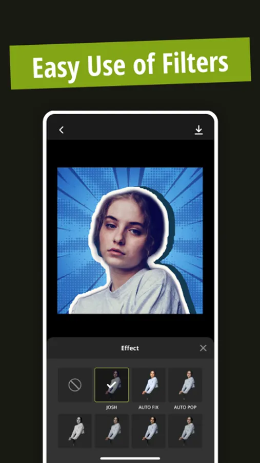 Turn your cutout photos into eye-catching images with the help of Photomash. Add ready made effects, outlines and shadow to your cutout, perfect for creating custom design graphics. You can change the background color to make the text stand out. Share on social media, or save in albums or files.