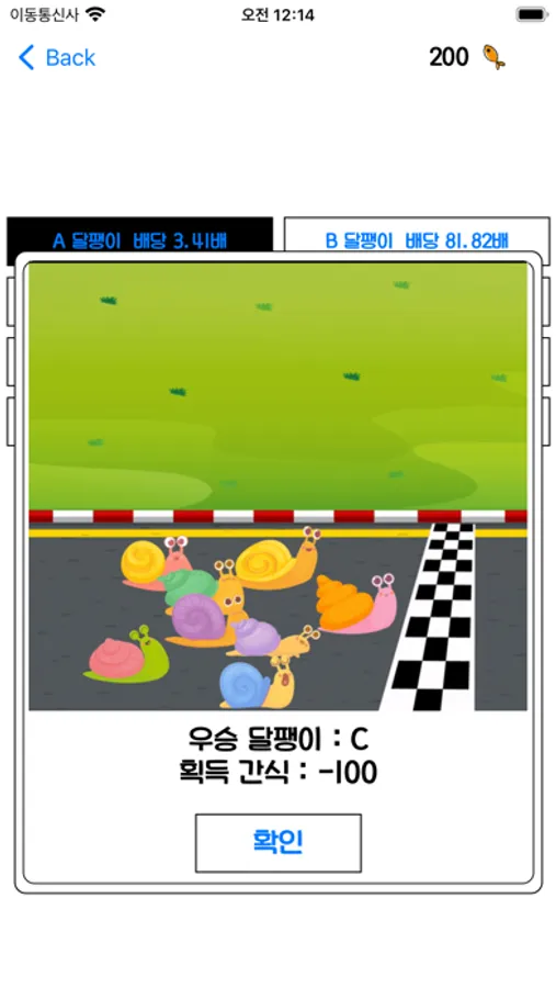 달팽이 달리기의 우승자를 맞춰서 간식을 벌 수 잇습니다.
