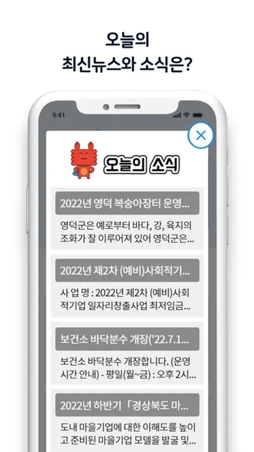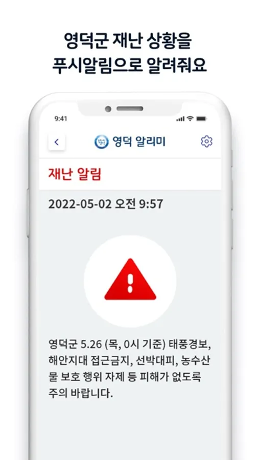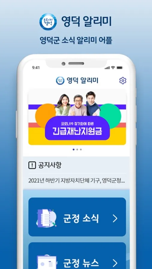 영덕군 지역의 생활과 밀접된 주요정보를 당당기관의 관리하에 어플로 간편하게 알려주는 서비스입니다.