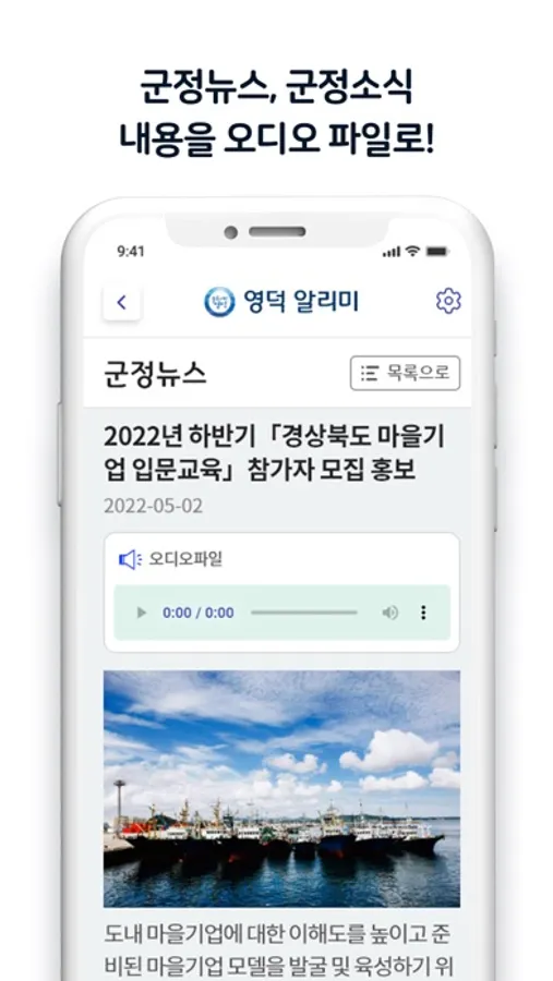 2. 군정뉴스 : 교육지원을 포함한 유익한 알림 사항을 뉴스와 오디오로 함께 확인할 수 있는 서비스