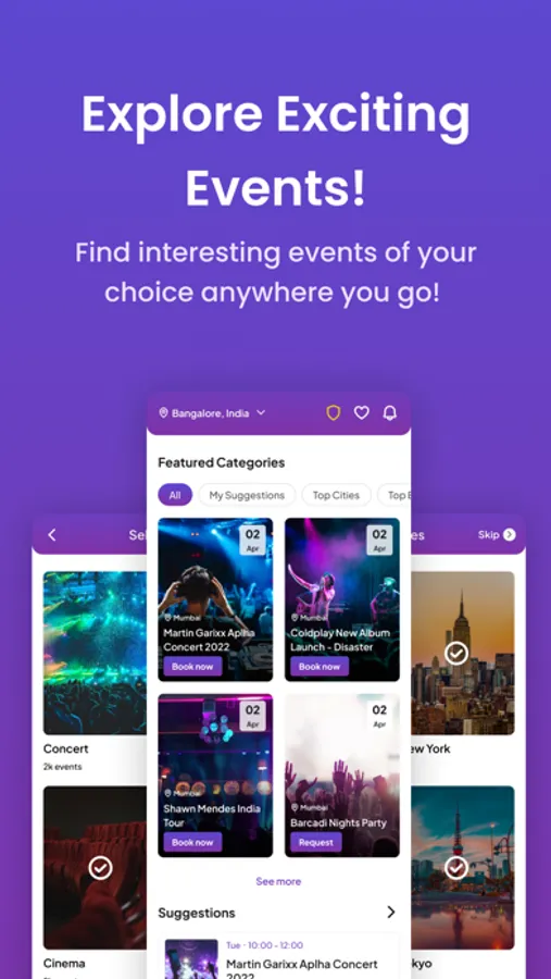 * Discover popular and recommended events happening around you