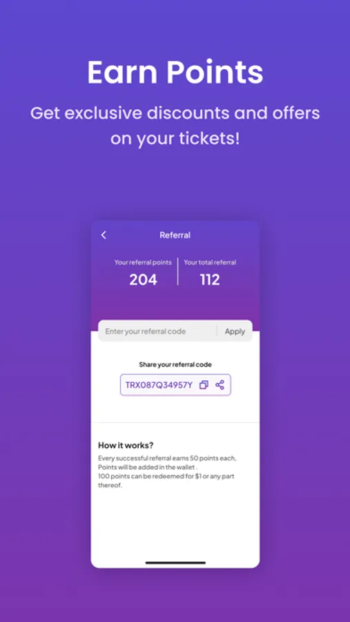 * Receive points that can be converted into cash toward ticket purchases