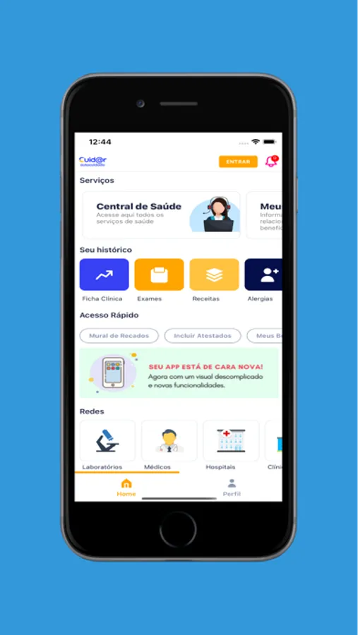 - Autocuidado: inclusão de histórico médico, resultados de exames, atestados e alergias, entre outros
