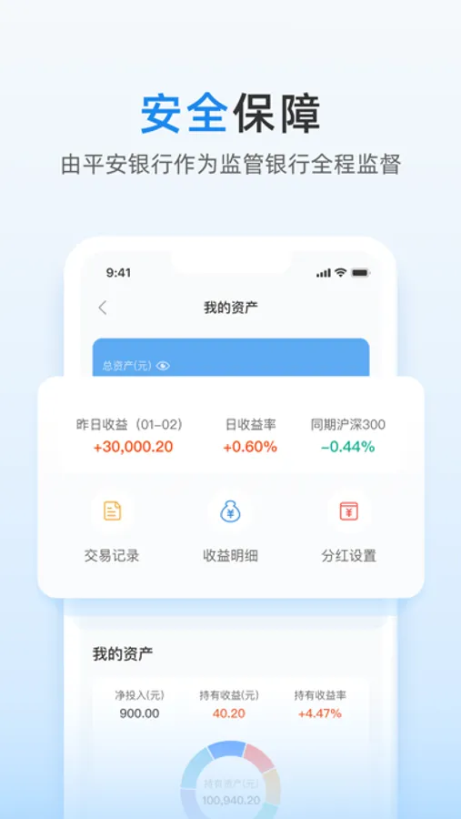 [安全保障]:交易资金存放于平安银行的专用账户中,平台无划拨资金权限;