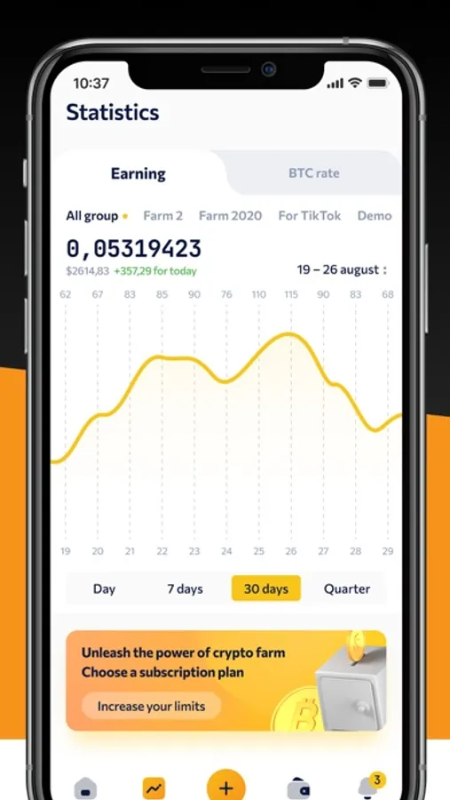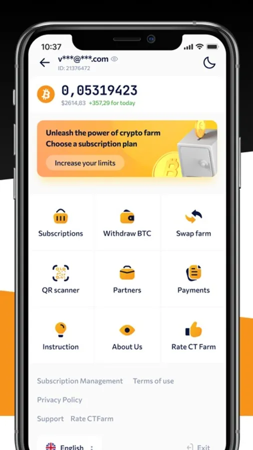 Make more with your phone and open a path to the easiest way of getting BTC income using CT Farm! With an intuitive interface and easy-to-navigate dashboard, perform any action in a matter of seconds: control your hardware, adjust their schedule, set up notifications, and withdraw with no commissions at any time — all convenience you need in one app!
