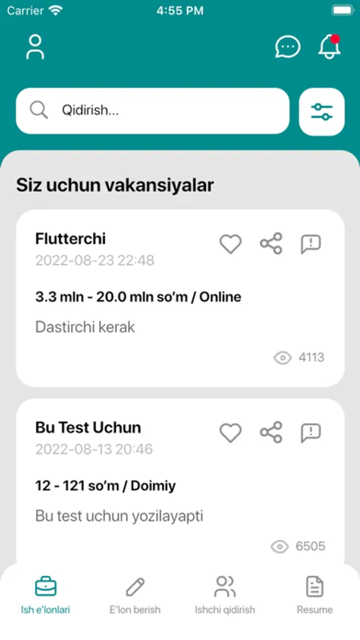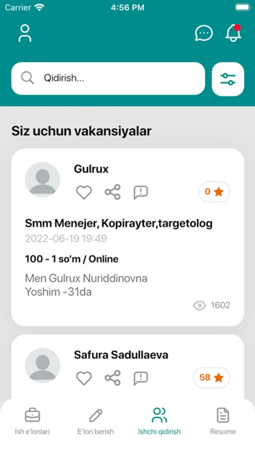 Bizning ilovada ish va ishchi qidirishingiz oson va BEPUL.