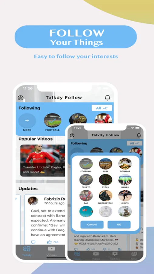 The Talkdy Follow app brings you all the breaking news across the world of all your fields including football transfers, football highlights, crypto-stock market, fashion trending, and much more. You can even share news stories with your friends and followers across your social channels.
