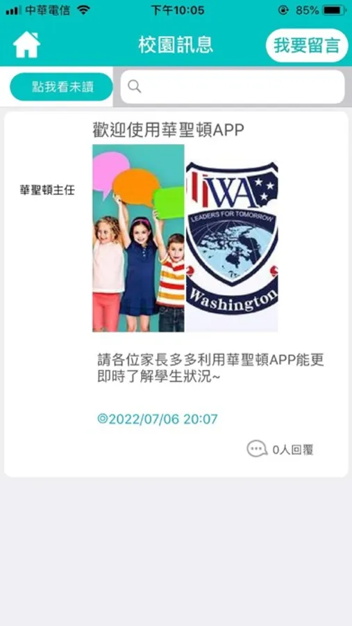 華盛頓教育集團 App提供親師互動平台以及家長個人化的貼心服務,舉凡班務訊息、親師溝通、學生到離班點名、大小測驗成績紀錄等,讓家長更加了解學生的學習狀況。