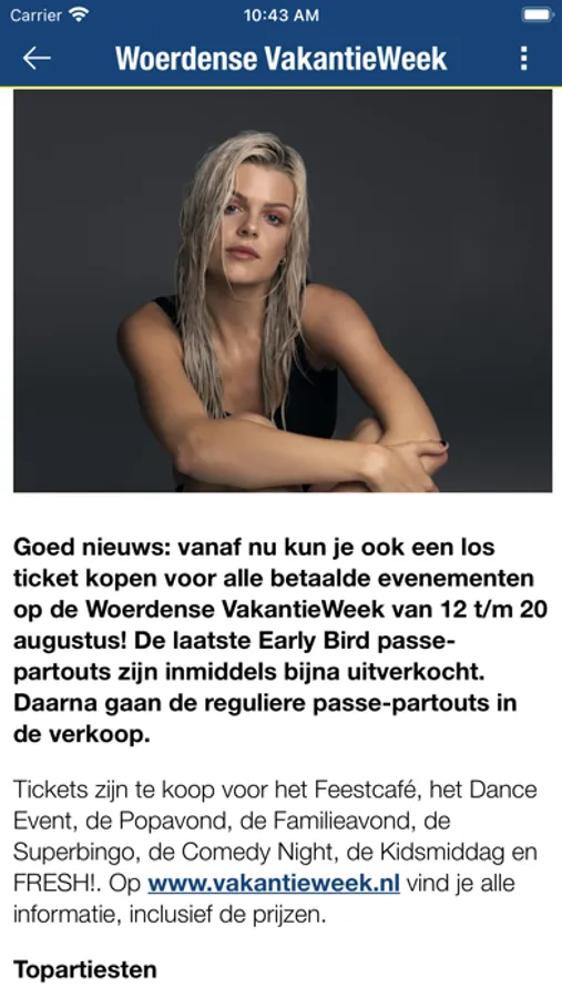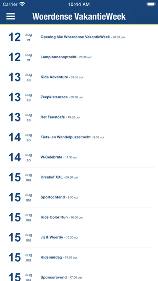 De officiële VakantieWeek app voor al je vragen en weetjes over De Leukste Week van het Jaar! Bekijk de activiteiten, volledige line-up en reserveer je tickets. Je vindt hier ook al het laatste VakantieWeek-gerelateerde nieuws. Gemakkelijk via je telefoon, tablet of op je pc/laptop alle info van de Woerdense VakantieWeek binnen handbereik. Voor de vrijwilliger bevindt er zich een apart afgesloten gedeelte met alle info voor achter de schermen zoals: wachtrooster, draaiboek, wvweetjes, etc.