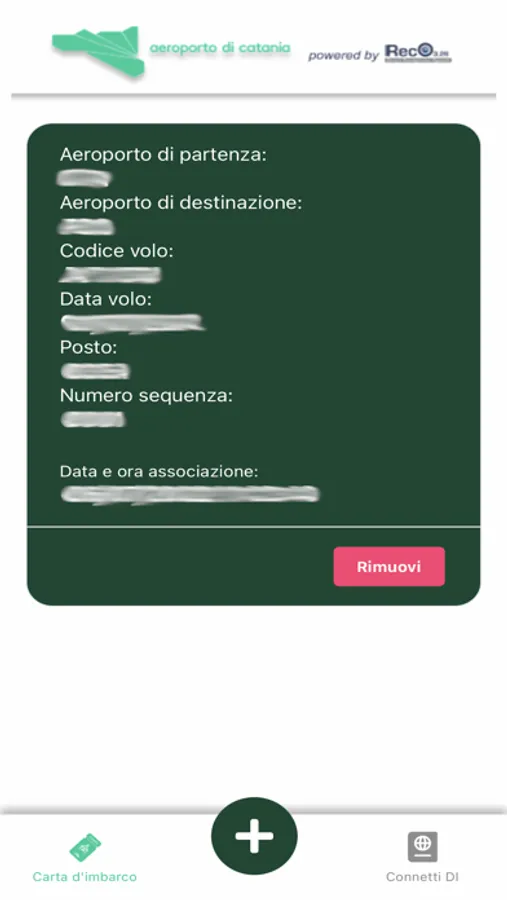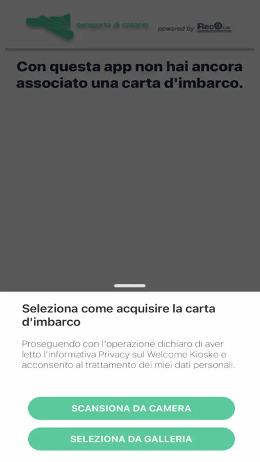 Preregistraziomne carta d'imbarco nel sistema di gestione boarding touchless dell'Aeroporto di Catania
