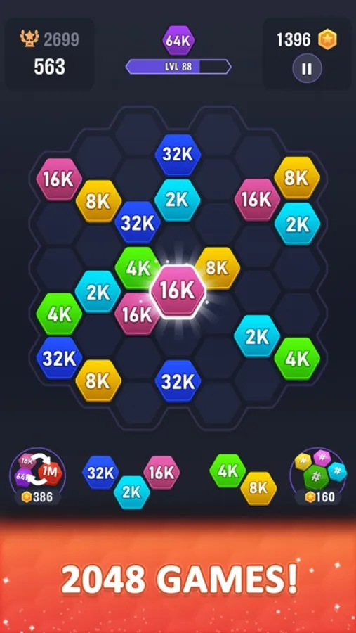 1024 2048 4096 8192 16384... Drop numbers and merge!