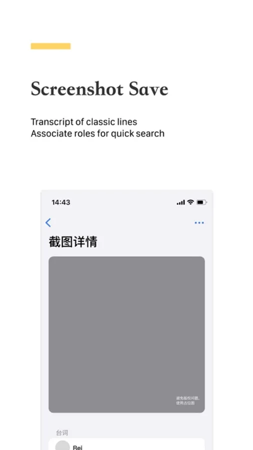 The stills in the process of watching will be saved, and the lines in the pictures will be recorded and associated with the roles, which will be convenient to find at any time.