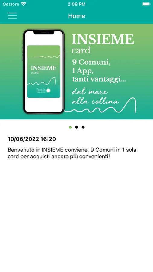 Scarica la App INSIEME conviene. Sulla App troverai la tua INSIEME card virtuale, che ti permetterà di avere uno sconto ricaricato sulla Tessera. Lo sconto poi potrà essere speso in tutte le attività che aderiscono al progetto. È sufficiente che mostri la card virtuale su questa App al momento del pagamento.