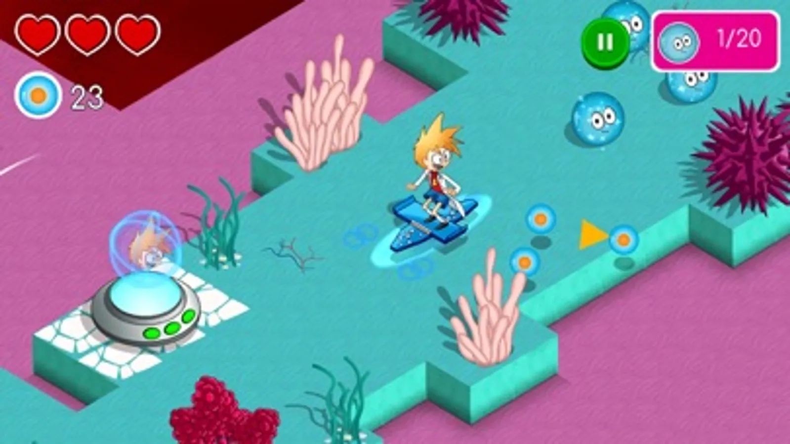 Hold on to the nanoskate to slide through the human body systems and save Finn, but remember, you will need to get the nanobots solution to heal him. Get them by solving fun science challenges across the body systems: musculoskeletal, digestive, circulatory, respiratory, nervous… overcome them all to save your best friend… and the world!
