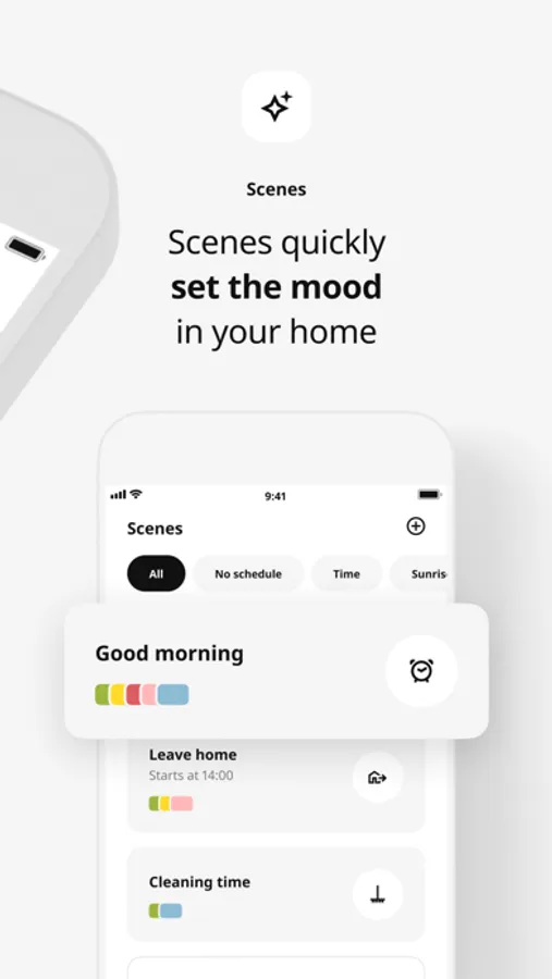 The magic happens when you combine two or more smart products from IKEA, tell them what to do in the app and save it as a 'Scene'.