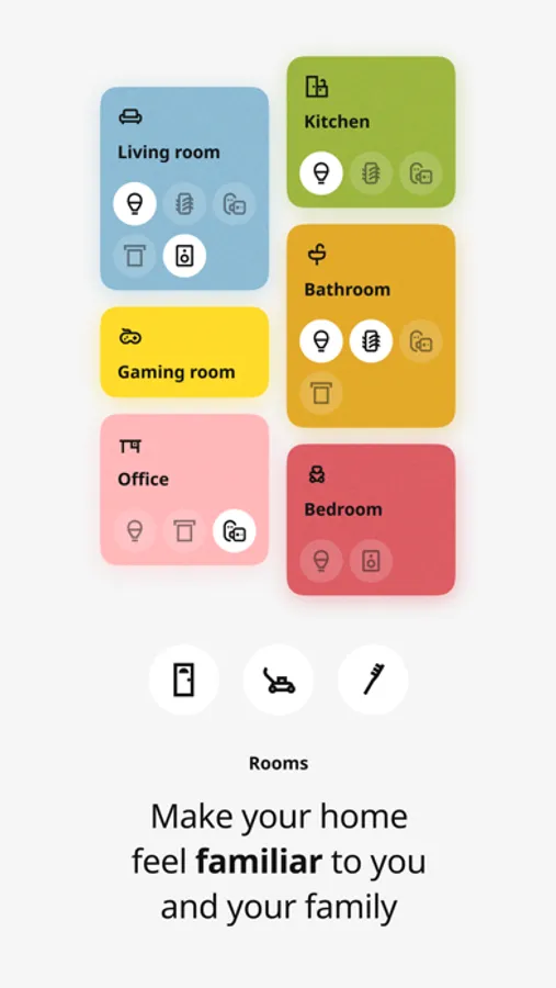 • Organizing your smart products in rooms gives fast access to the products you want to control.