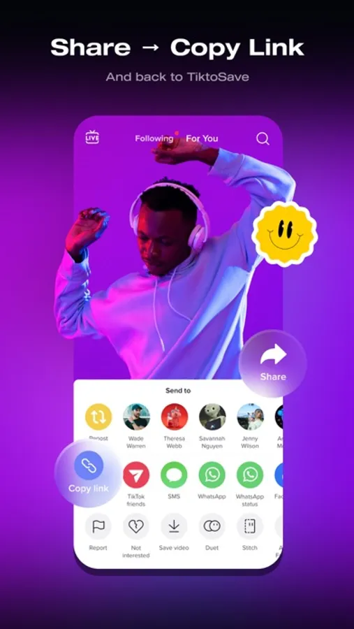 TiktoSave #1 app to share video from TikTok. With just a couple of clicks, you can share, save and repost video.