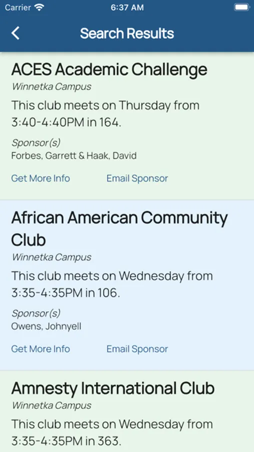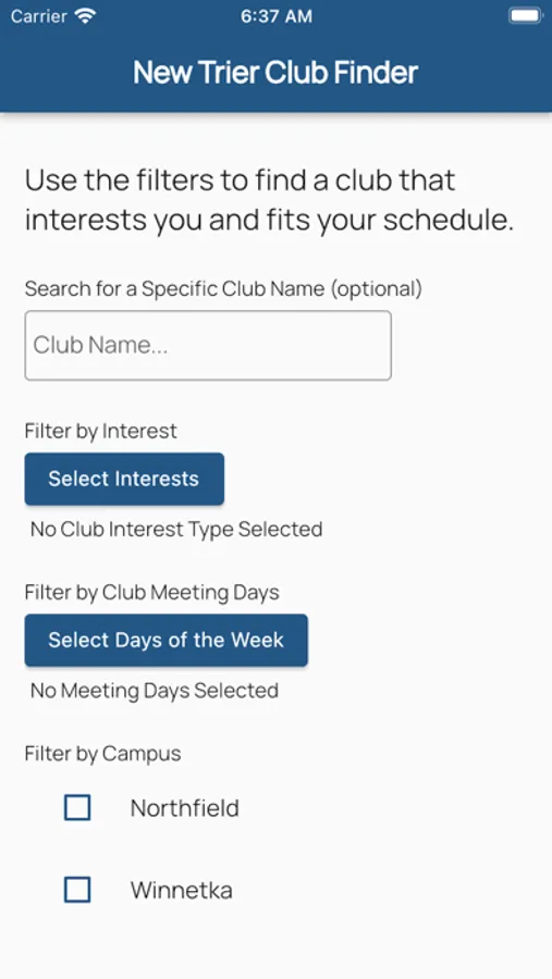 New Trier Club Finder allows students at New Trier High School in Winnetka, Illinois to find a club that fits their interests and schedule.