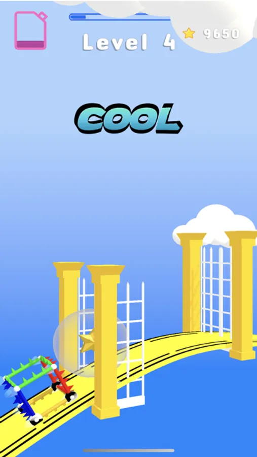 There is a lot of fun on the way of the colored square, trampolines and soap bubbles with stars that you can also pop.