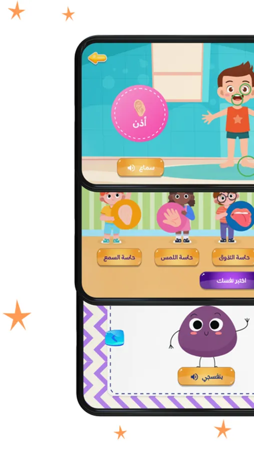 The game contains many educational and entertainment sections that help your child learn in an interesting way without getting bored and works to increase their awareness and develop their thought and imagination