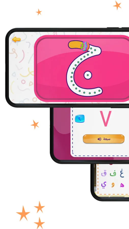 learn the Arabic alphabet in an interesting way that ensures the stability of information in your child's mind by arranging and displaying the Arabic alphabet letters with a sound and an animation for each letter to be an example of the use of the letter.