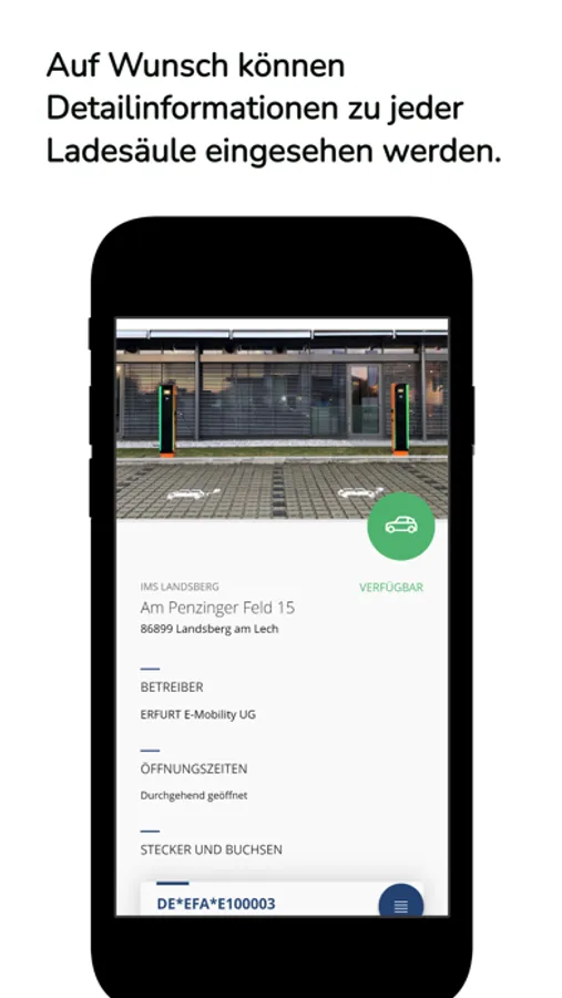 Ladeapp für EMOBILIX Ladekunden. Der Ladeservice der ERFURT e-mobility aus Landsberg am Lech. App nutzbar für öffentliche Ladepunkte, Mitarbeiterladepunkte sowie private Ladepunkte in WEGs.