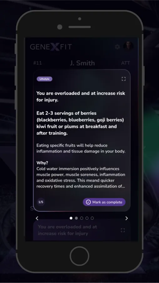 o Daily genetic-based nutrition and lifestyle recommendations to improve health and performance