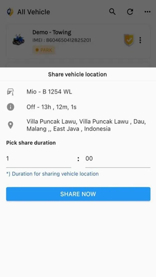 - Laporan berapa lama kendaraan menyala / mesin berkerja.
