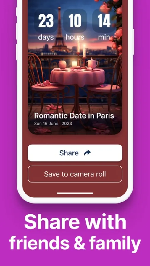 No more worrying about forgetting significant moments. Simply add an event, set the desired date and time, and the timer will start immediately. You will see the exact time until the event in days, hours, minutes, and seconds. Once the time is up, you will receive a notification so you don't miss any important details.