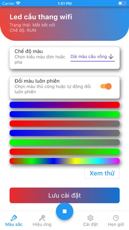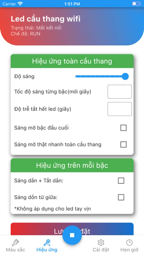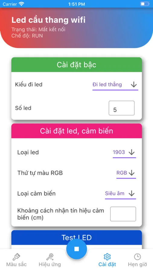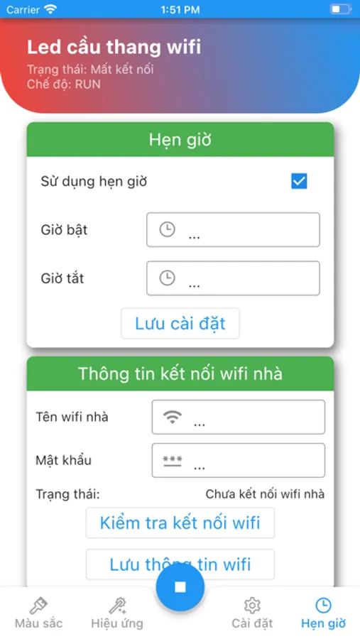 Kết nối vào wifi Led cau thang, mật khẩu 88888888