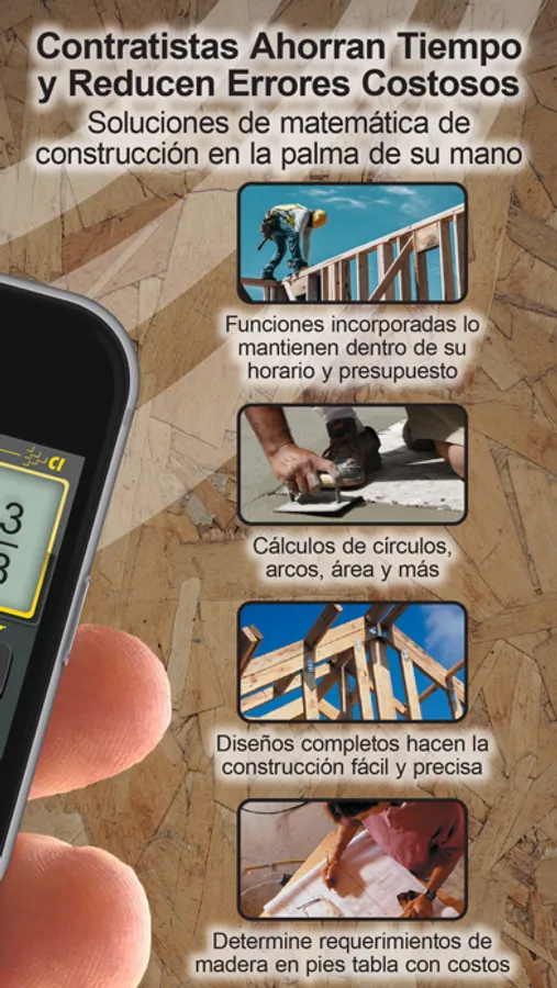 Como una app en su teléfono o tableta, es ideal para constructores, contratistas, diseñadores, fabricadores, carpinteros, trabajadores de oficio de cada especialidad y personas diestras en el bricolaje – cualquier persona que trabaja con dimensiones interesada en mejorar eficacia, precisión y productividad.