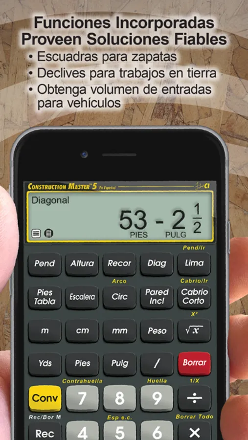 Ahora usted también puede ahorrar tiempo y reducir errores costosos con la Construction Master 5 de pies-pulgadas-fracciones, ¡la calculadora premiada y comprobada en la industria!