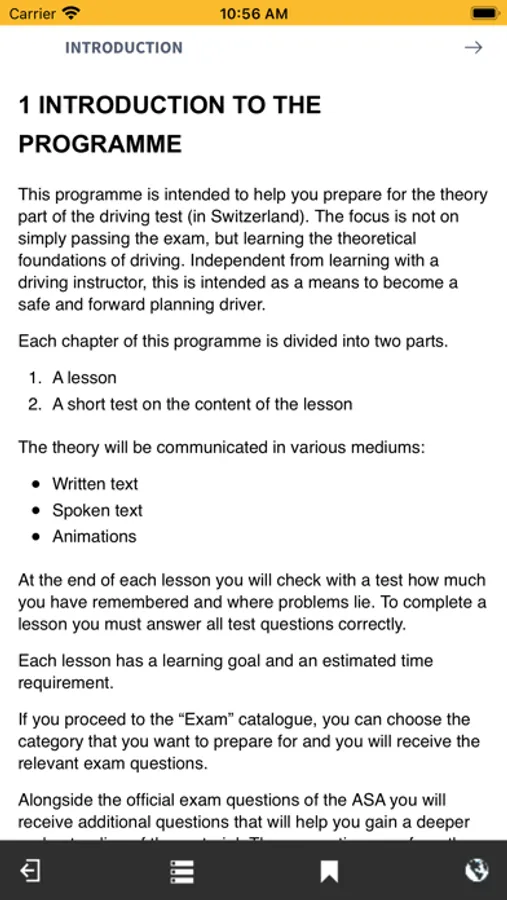 Preparation for the car theory test for motor vehicle drivers Cat. A1, A, B, M, F and G, available in English, German, French and Italian