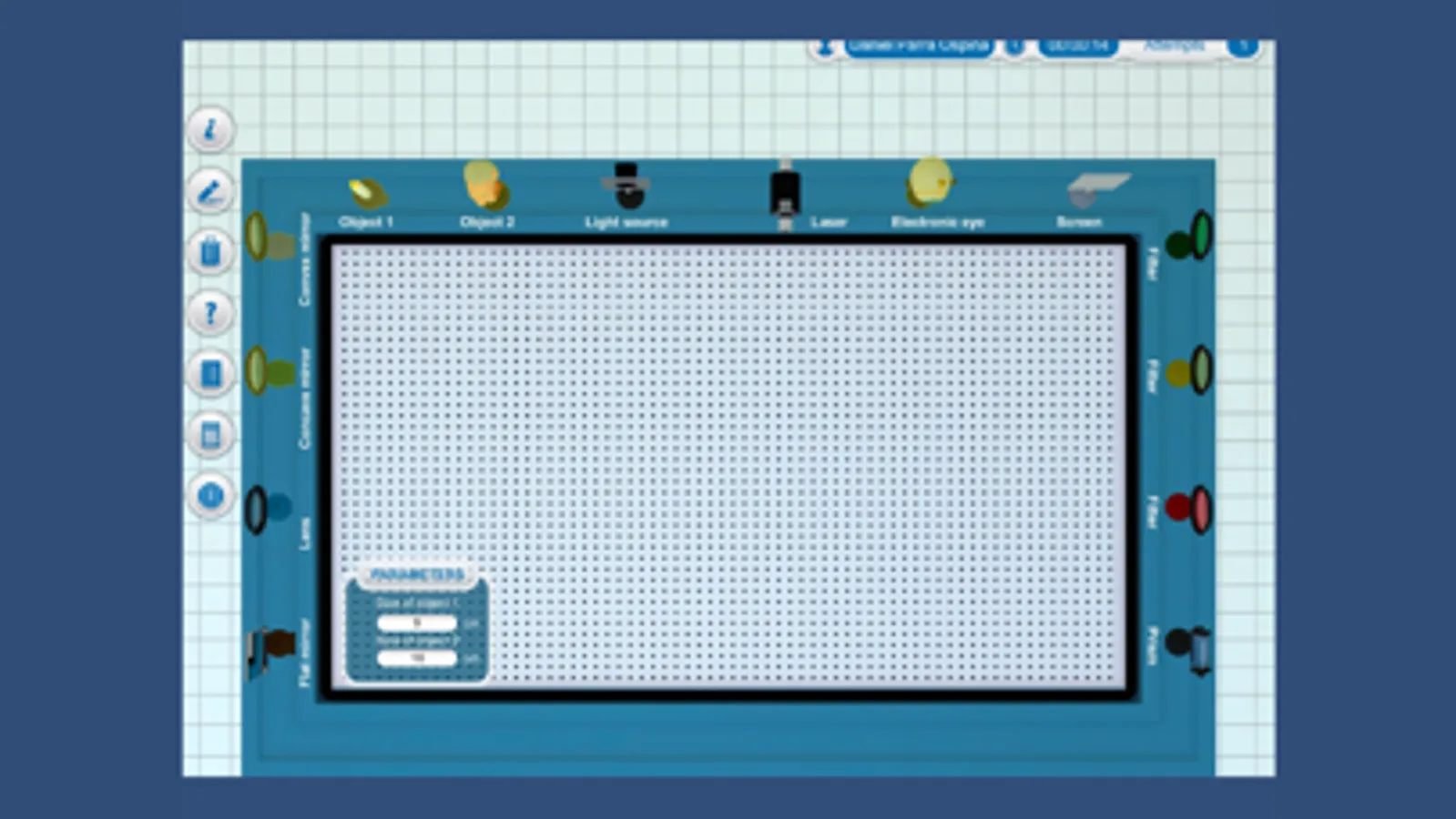 This simulation recreates an optical table with a concave and a convex mirror, the goal is to find the focal length, the radius of the curvature and determine if the image is inverted or not. In the development of the practice, each of the mirrors can be placed on the optical table and two objects can be used to observe both the image that is formed, as well as its size, as the distance between the object and the mirror is varied.