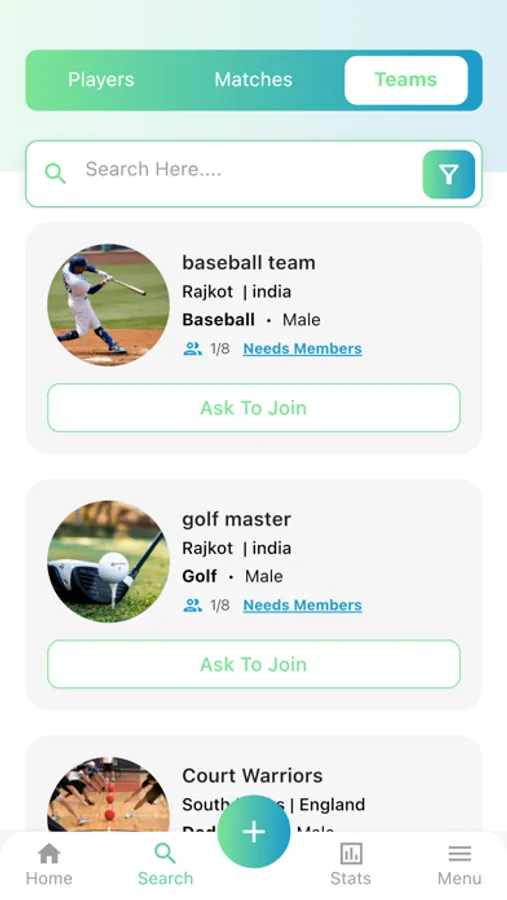 ATLATIK's search and filter feature makes it among the best apps for athletes by simplifying the process of discovering for you. You can easily find users, matches, and teams you prefer to join and engage with. It helps you effortlessly connect with the right sports enthusiasts and events. Also, you can easily search for specific individuals, matches, or teams with ATLATIK.