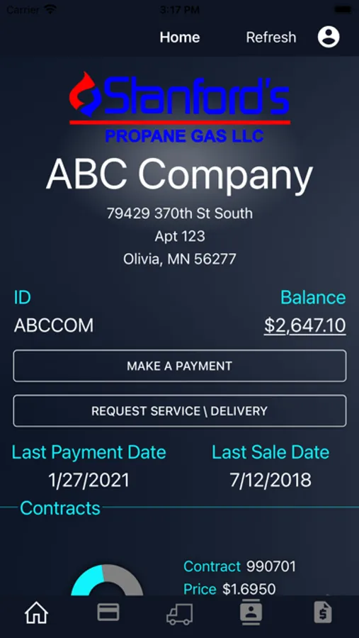 Information at your fingertips! This app gives you direct access to your account balance, location and contract information. It also gives you the ability to store and process payment and request service work and deliveries directly through the app.