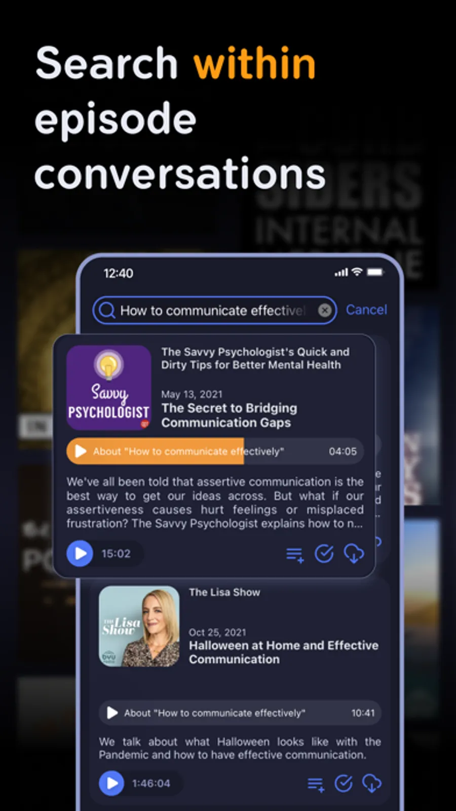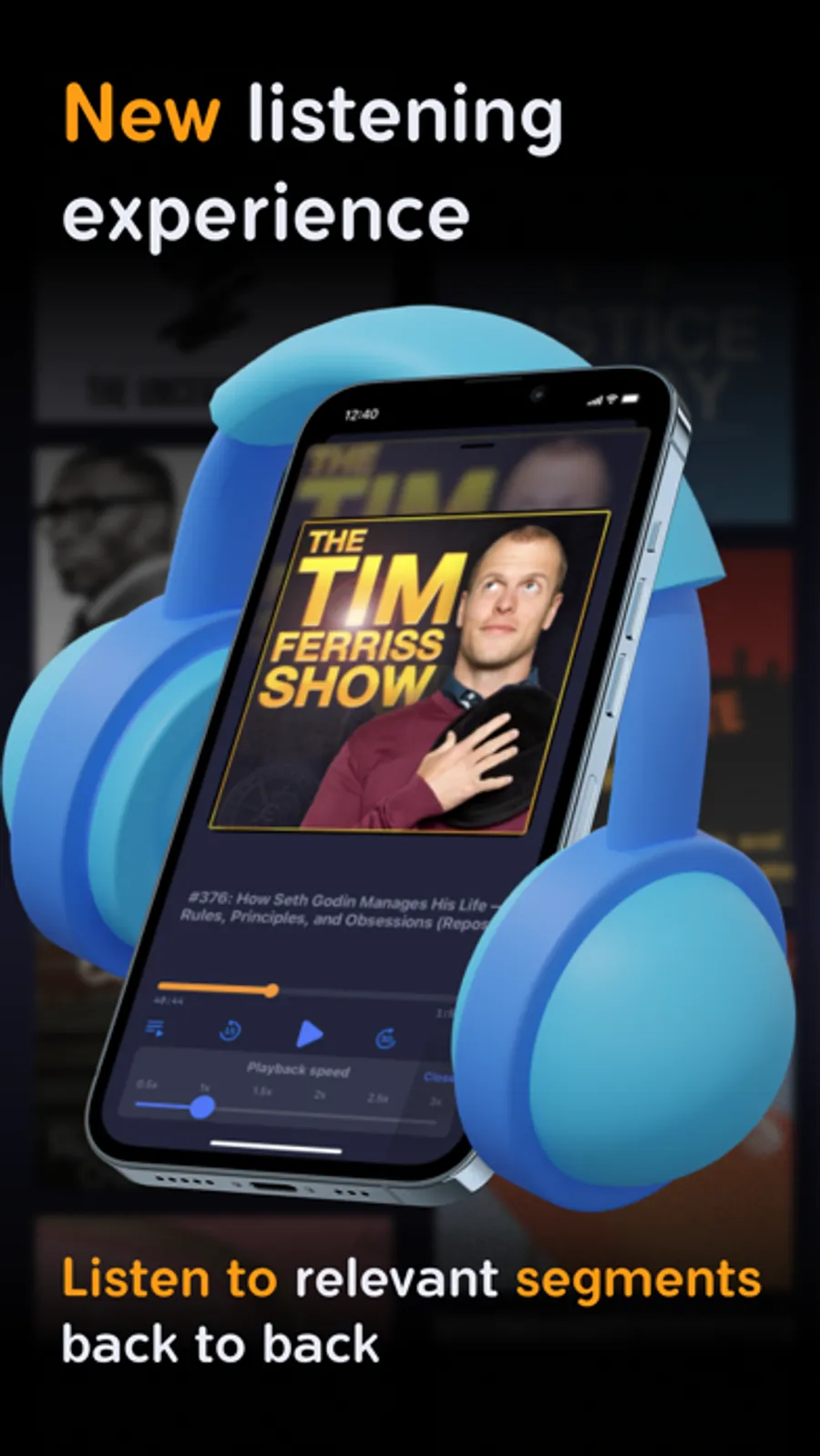 With Noorami, we find the most relevant segments of an episode for you. Simply search whatever sentence is on your mind and the results will contain both the relevant episodes and the segment of each episode that is most related to your search. You can get a feel for the episode by listening to the segment, or listen to back to back segments so that you get different perspectives on what you care about.