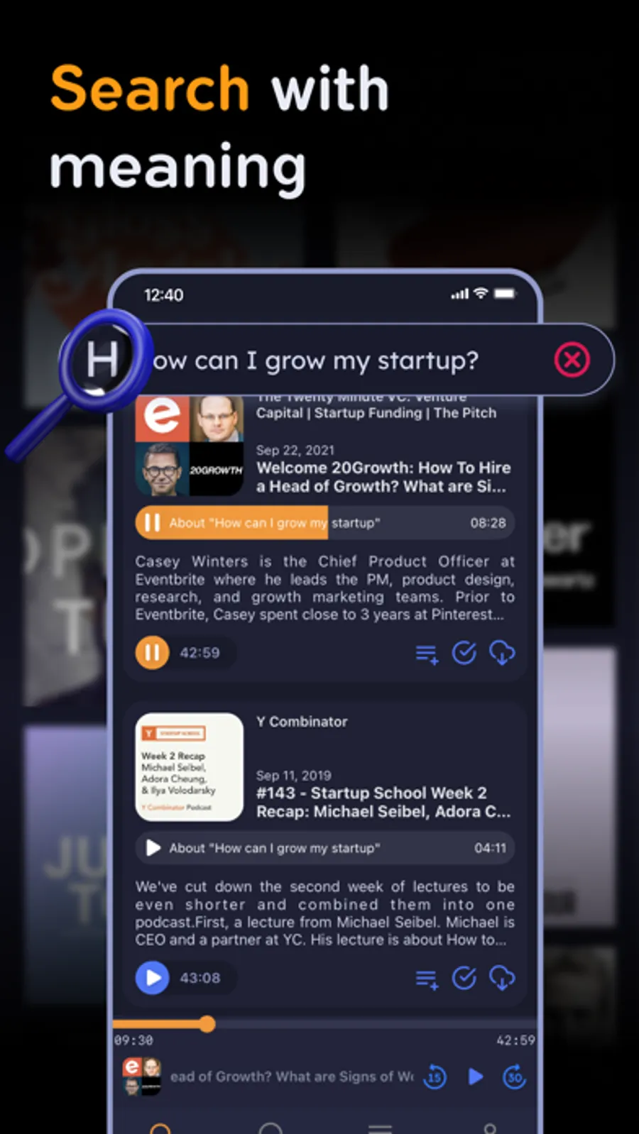 Noorami uses an AI-powered search engine that analyzes millions of podcast audio files to find the content and topics that are discussed in each episode. So now you can actually find content based on what is said in the conversations, even if what you are looking for is hidden deep into the episode.