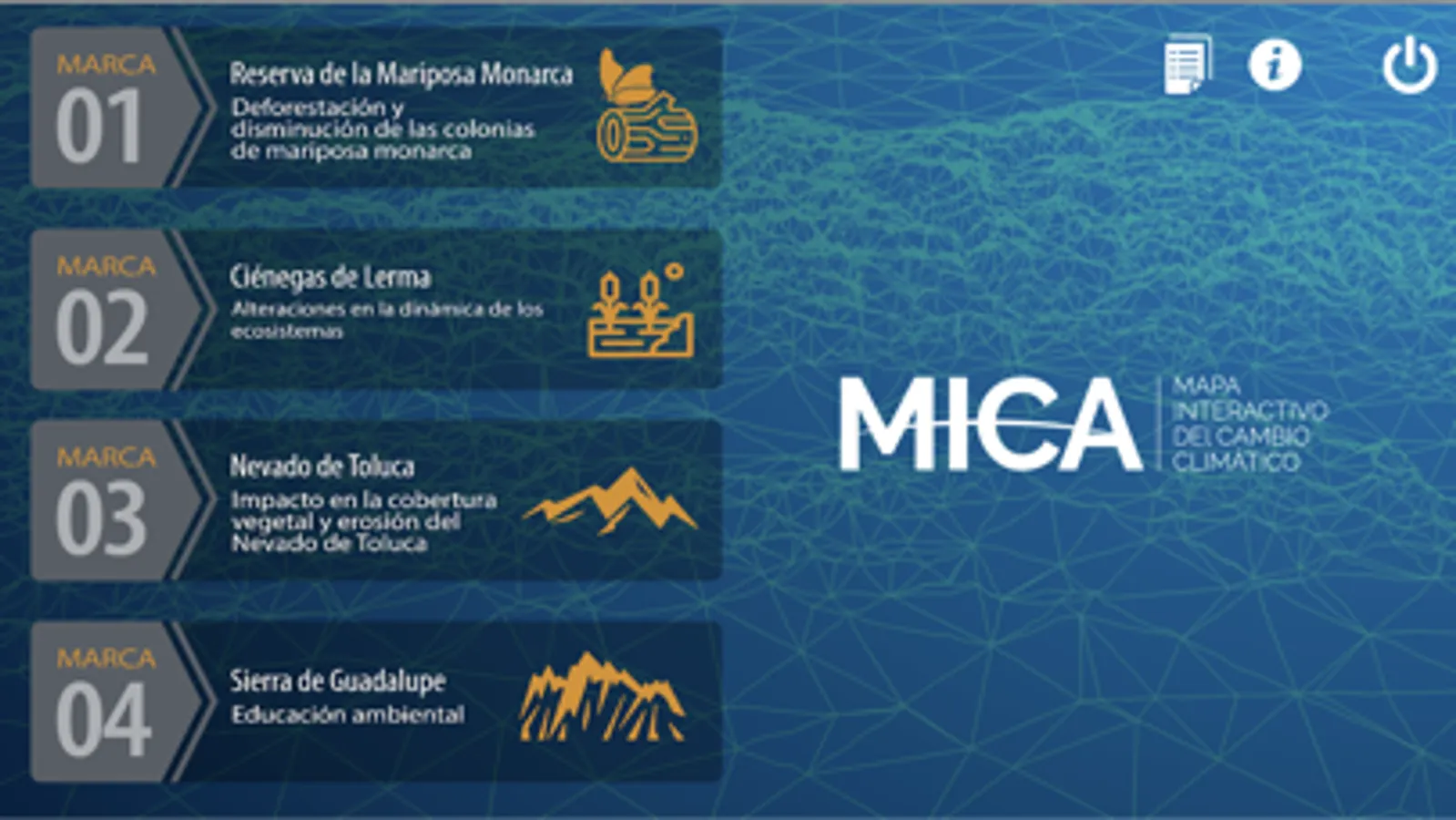 MICA. Mapa Interactivo del Cambio Climático de la Región de México DF, ofrece la oportunidad para la construcción de saberes científicos desde una perspectiva integrada y comprender algunos alcances, limitaciones e implicancias de la ciencia y la tecnología en la sociedad. La perspectiva de MICA permite visibilizar los diversos procesos que relacionan el conocimiento científico y tecnológico con la construcción de la sociedad, y viceversa, permitiendo involucrarse con pensamiento crítico en la vida cotidiana y contribuir al ejercicio de una ciudadanía participativa y consciente. Comunicar educativamente el conocimiento científico y desarrollo tecnológico en el marco del Cambio Climático es fundamental para el bienestar futuro de la sociedad, pues las adaptaciones, mitigaciones en este ámbito permitirán avanzar en medidas apropiadas de conservación y protección del ambiente de la Región de México DF.