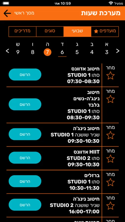 סימון ובחירת אימונים מועדפים והצגת אימונים עם המאמן המועדף עליכם.